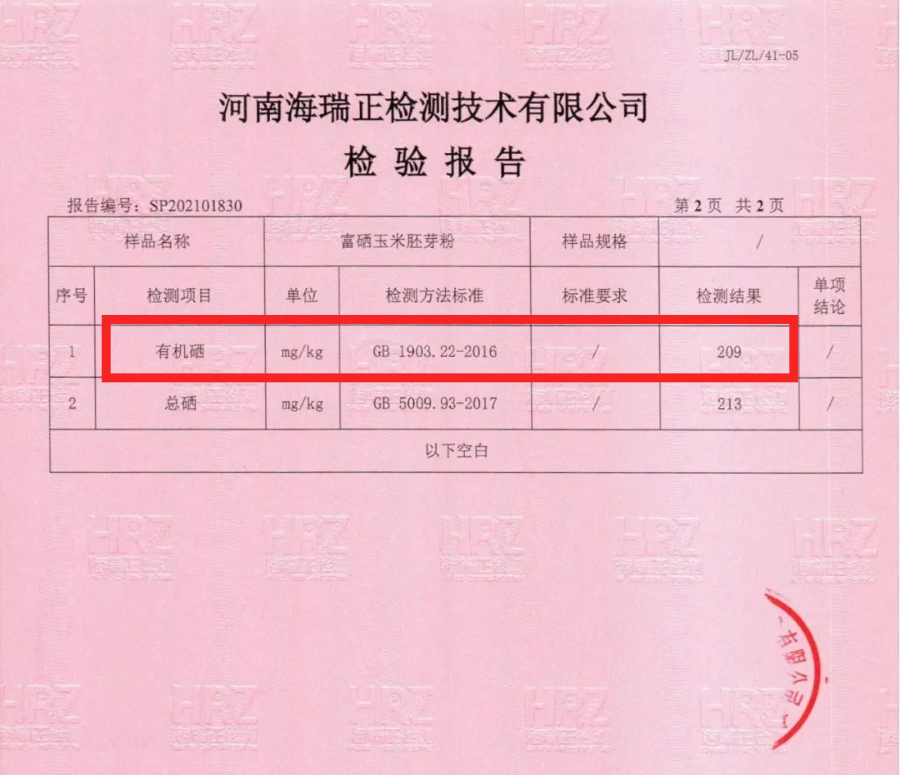 瑞之恩富硒玉米胚芽粉有機(jī)硒含量檢測報告